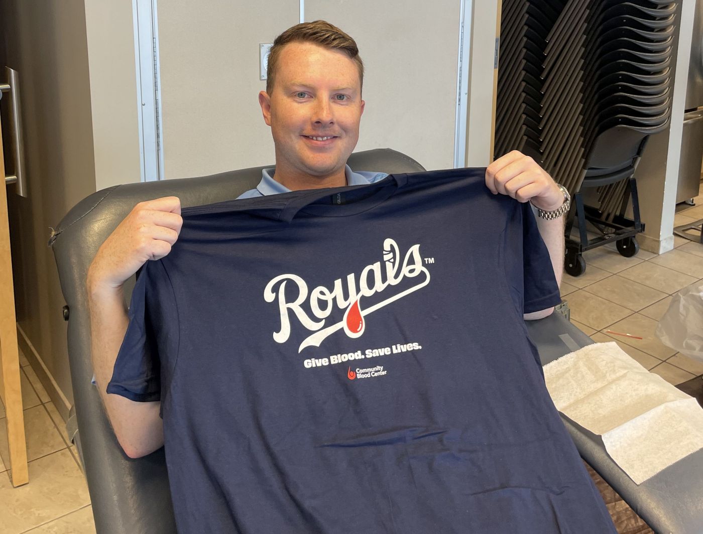As a thank you for giving the lifesaving gift of blood donation, all who came to donate received a Royals T-shirt and two vouchers redeemable for tickets to a select 2025 Royals home game.